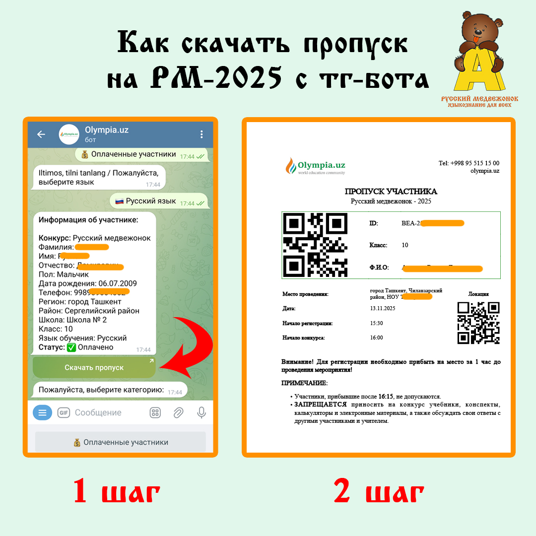 Участники конкурса Русский Медвежонок 2025! Время скачать пропуск и узнать места проведения.